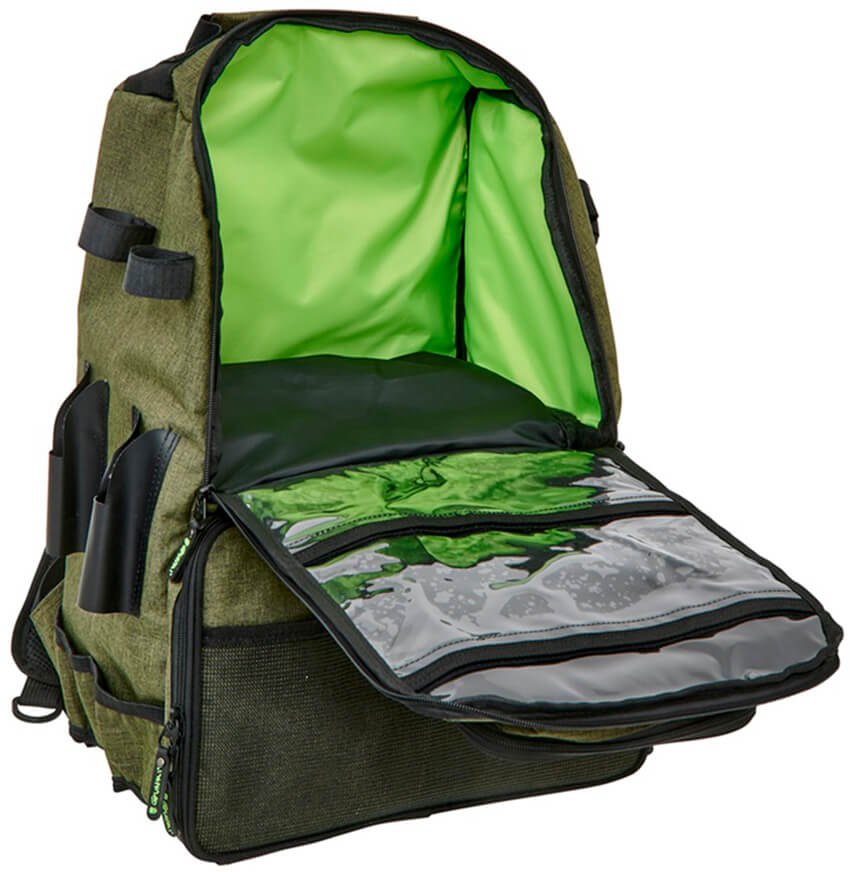 - Inteligentné delenie priestoru: Batoh disponuje dvoma hlavnými komorami na zips. Spodná, priestrannejšia časť, je už v základe vybavená 3 krabičkami na nástrahy, takže môžete vyraziť k vode ihneď po vybalení.
