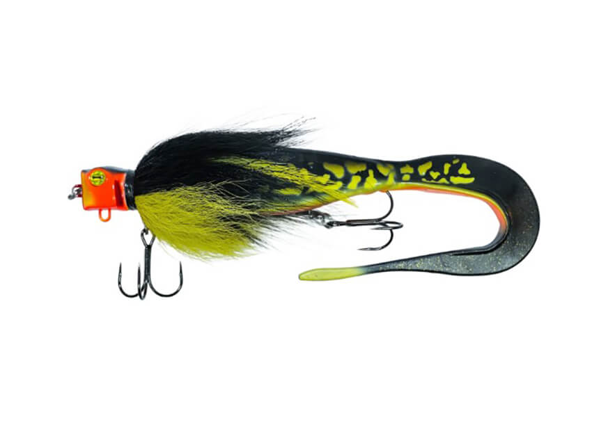 - Masívna predná časť: Plytká dutina v hlave v kombinácii s objemným prírodným bucktailom (doplneným o lurex a perie) vytvára pri pohybe silný, neprehliadnuteľný impulz.