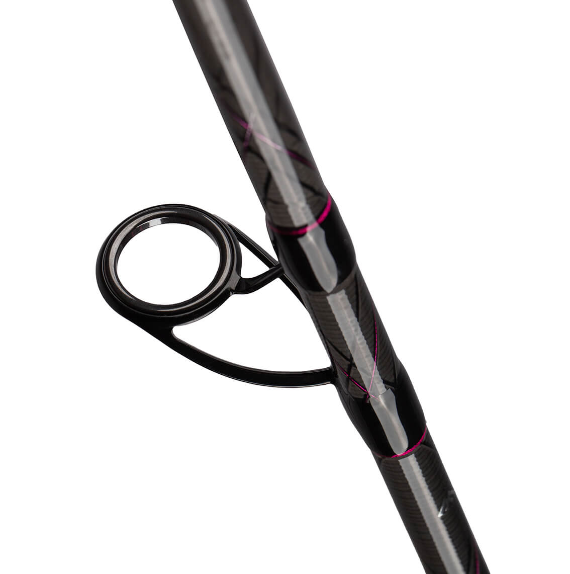 Základom prútu je špičkový 24T karbón s kevlarovým opletom. Táto kombinácia zaručuje extrémnu pevnosť pri zachovaní nízkej hmotnosti a vysokej citlivosti. Vďaka vylepšenému rozmiestneniu zväčšených očiek typu K dosiahnete pri nahadzovaní väčšie vzdialenosti s minimálnym trením vlasca.
