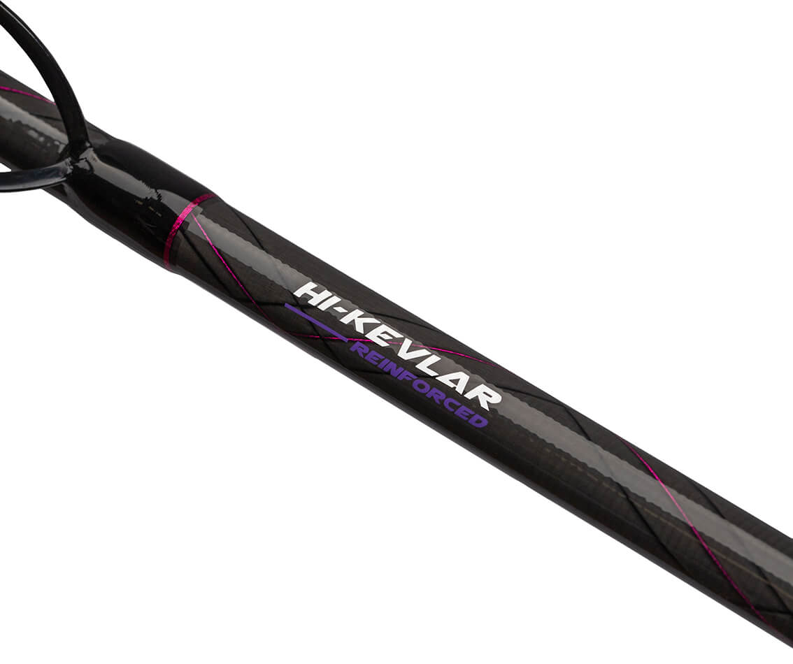Základom úspechu je vylepšený blank z 24T karbónu, ktorý je dodatočne spevnený kevlarovým opletom. Tento technologický postup umožnil vyrobiť prút s menším priemerom, ale s vyššou odolnosťou voči preťaženiu. Nové zväčšené očká typu K minimalizujú trenie, čím predlžujú dĺžku vašich náhodov a eliminujú nežiaduce motanie vlasca.
