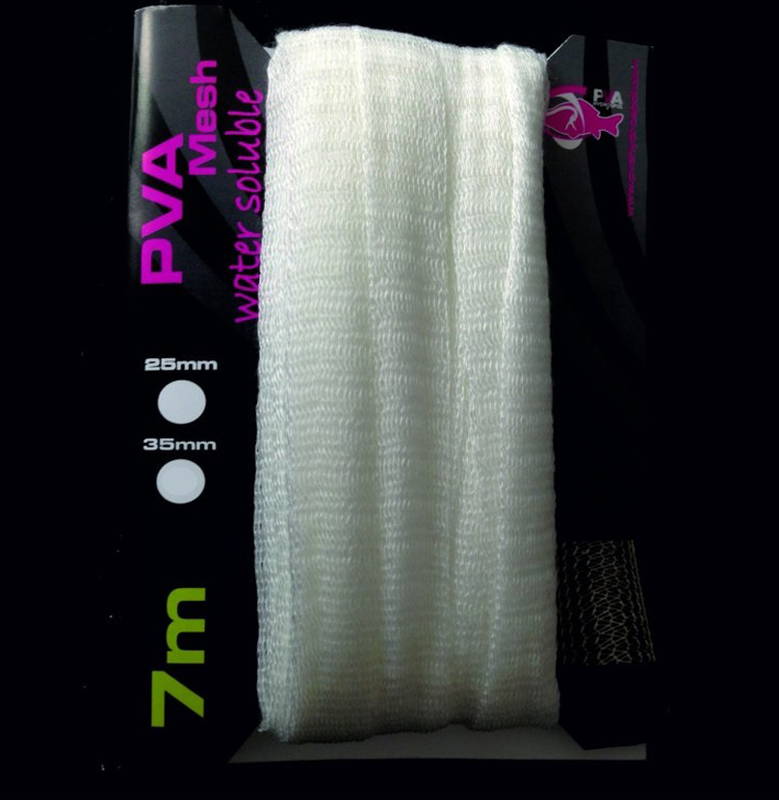 PVA Pančucha-Mesh z rozpustného materiálu určená na presné umiestnenie rybárskej nástrahy na lovné miesto. Vďaka štýlu pletenia sme dosiahli pevnosť, tuhosť a stále zachovali elasticitu čím je možné hrubé zaobchádzanie bez obáv pretrhnutia. PVA pančucha má pomalšiu rozpustnosť vďaka kvalitnému vláknu a doba, po ktorej sa rozpadne je ideálna aj pre teplejšie alebo hlbšie vody a je vhodná ako pre menšie ale aj väčšie krmivo. Čas rozpustnosti závisí od teploty vody v priemere 35 sec..Balenie 7m.