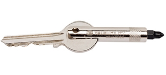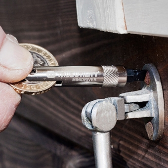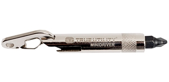 Tento malý klenot nebude len vyzerať skvele na Vašich kľúčoch, ale je aj veľmi užitočný. Obsahuje štyri skrutkovacie hlavy - malý a veľký Phillips, dva ploché skrutkovače. Jednoducho odstráňte rýchloupínací klip a zasuňte kľúč alebo mincu do plochého konca, takže môžete vyskrutkovať aj tie najdrsnejšie skrutky. Ďalšie skrutkovače sú ukryté v tele MiniDriver.Rozmery 60 x 10mm, materiál pochrómovaná oceľ.