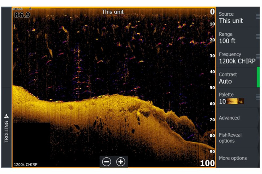 - Podpora SideScan FishReveal pro zobrazení oblouků ryb (s modulem S3100 a HDS Pro)