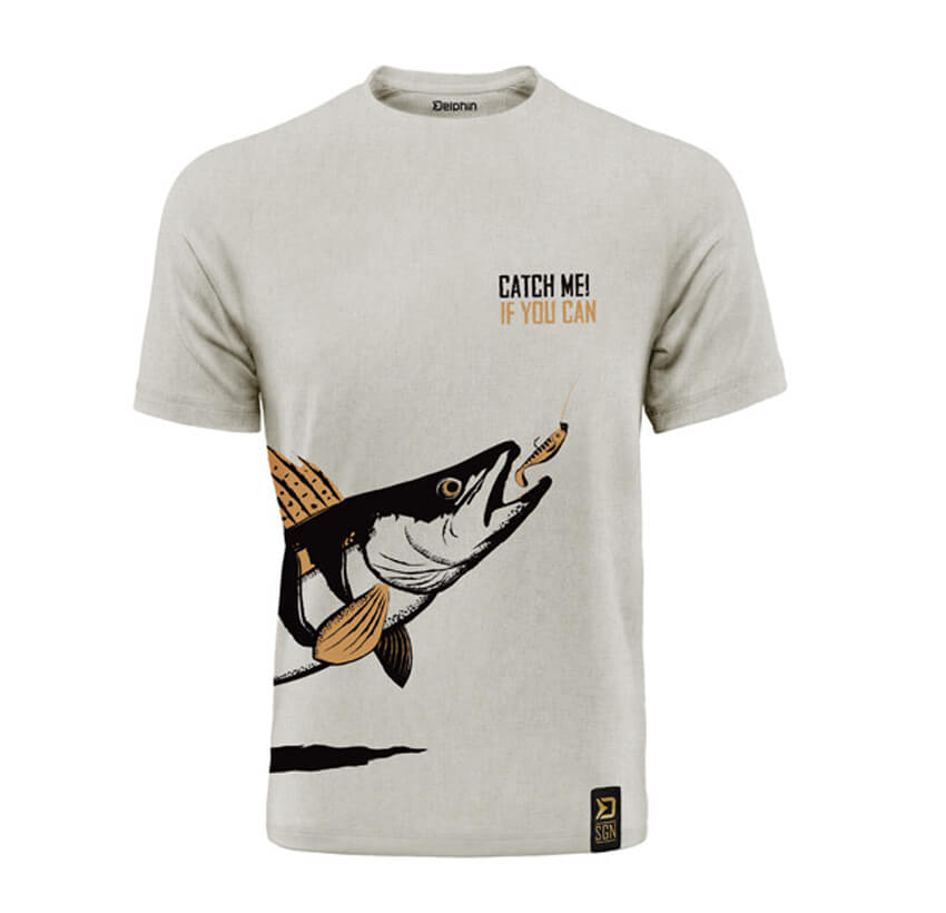 Séria štýlových a pohodlných tričiek s vyobrazením rýb, vhodných nie len na ryby, ale taktiež k bežnému noseniu. CATCH ME IF YOU CAN (chyť ma ak to dokážeš) sa nepochybne stane jedinečným kúskom každého rybárskeho šatníka, vďaka ktorému sa pri vode odlíšite.Tričko Catch me! ZUBÁČ je dizajnované v krémovej farbe s vyobrazením zubáča, ktorý sa práve blíži k nástrahe, čo je moment, na ktorý čakajú všetci priaznivci lovu týchto rýb.