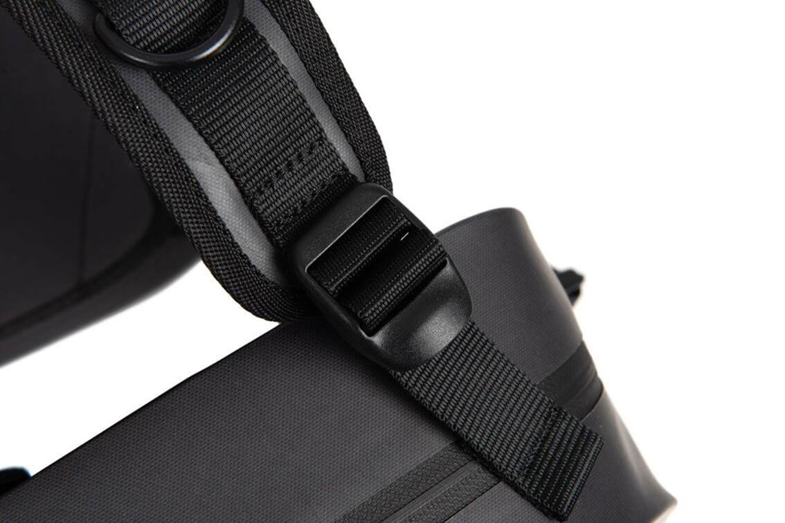- Vodotěsný náprsní batoh: chrání vybavení před deštěm, stříkající vodou i případným potopením.