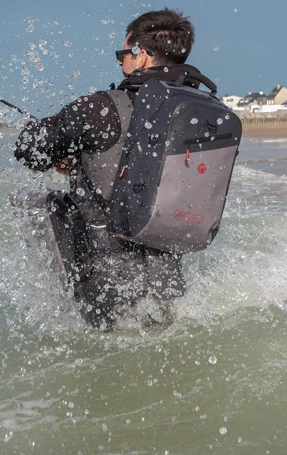 Díky 100% voděodolnému provedení se speciálně utěsněnými zipsy udrží vaše vybavení a osobní věci v suchu a bezpečí. Ergonomický tvar s nastavitelnými ramenními popruhy zaručuje pohodlí i při celodenním nošení, zatímco praktické D-kroužky umožní jednoduché připevnění nástrojů či podběráka.