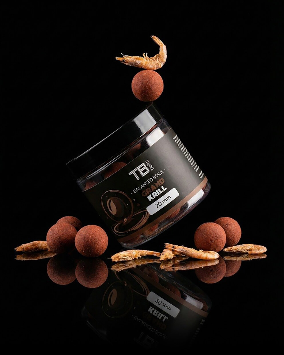 Vyvážené boilie TB Baits Balanced Grand Krill + atraktor, popis